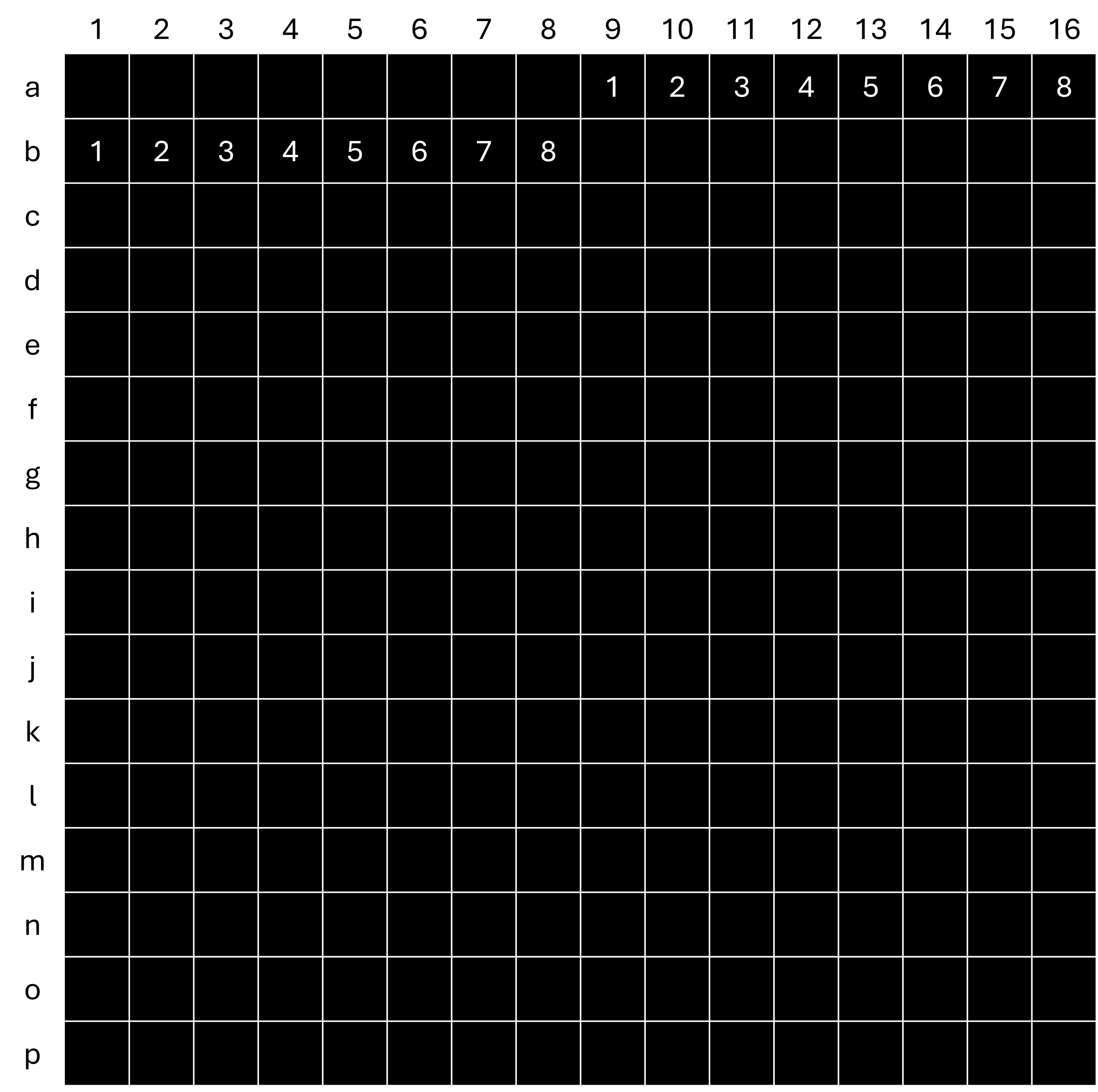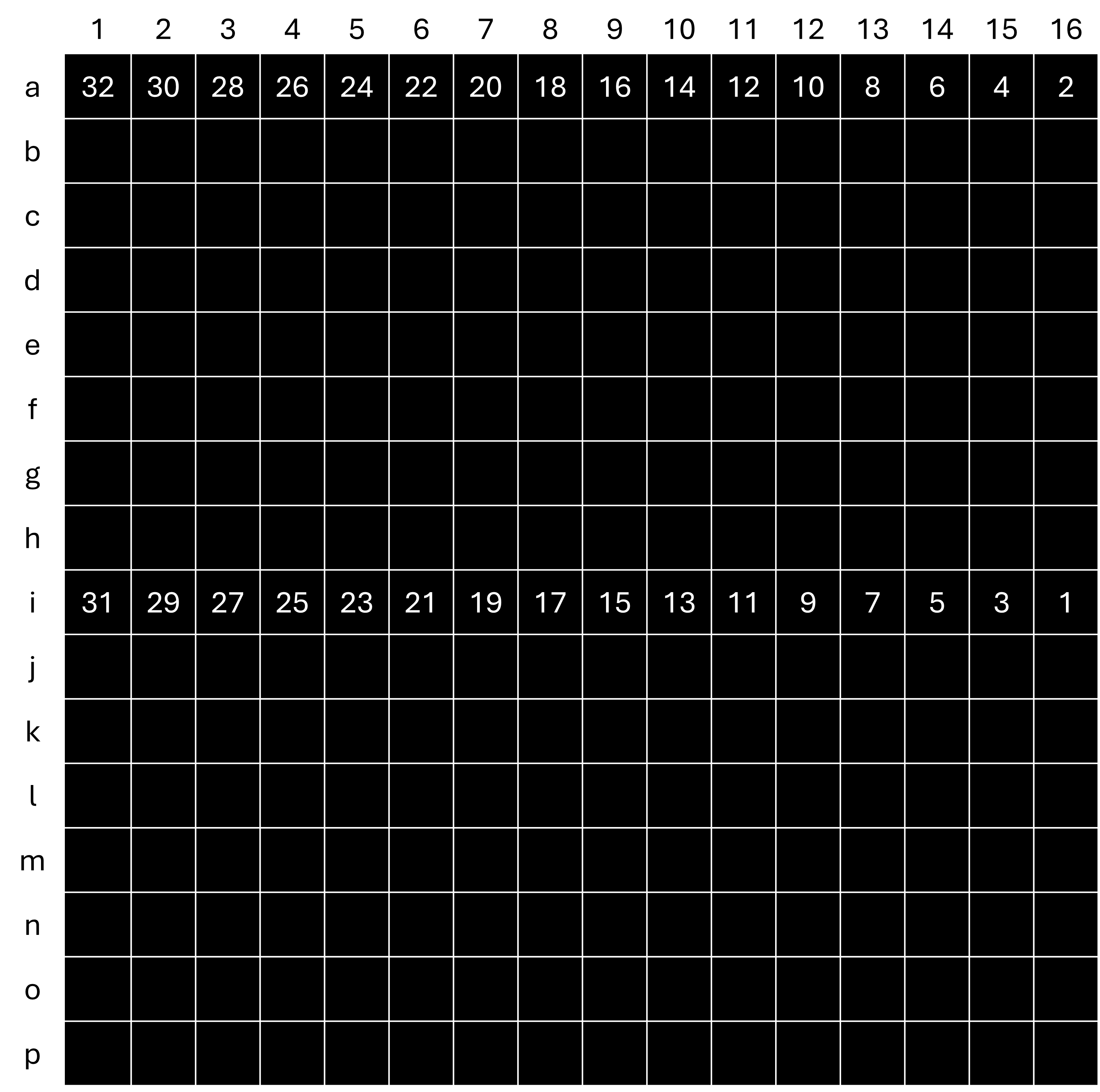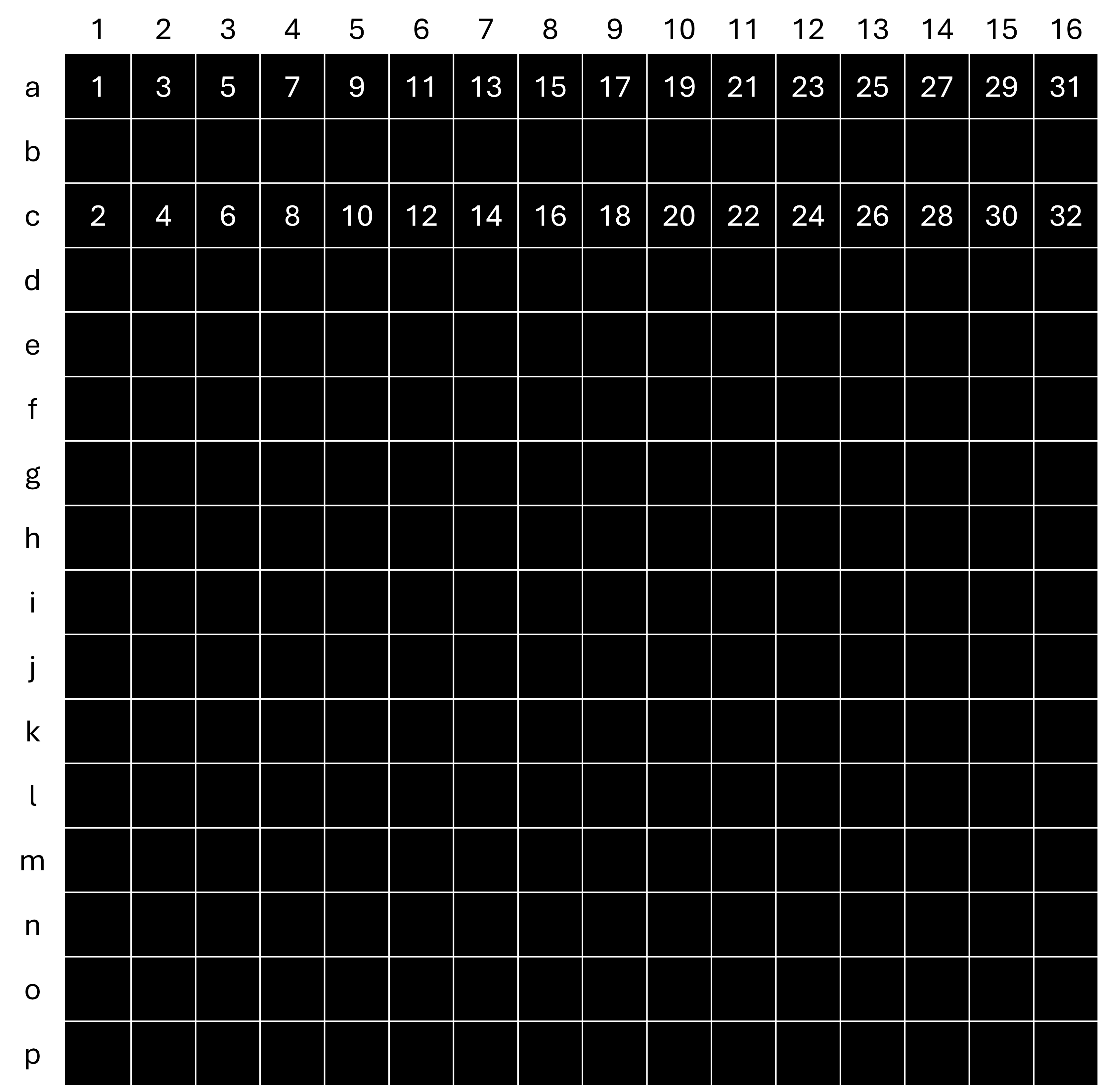 _)만 이용 - 행(소문자) - a=1행, b=2행, … , p=16행