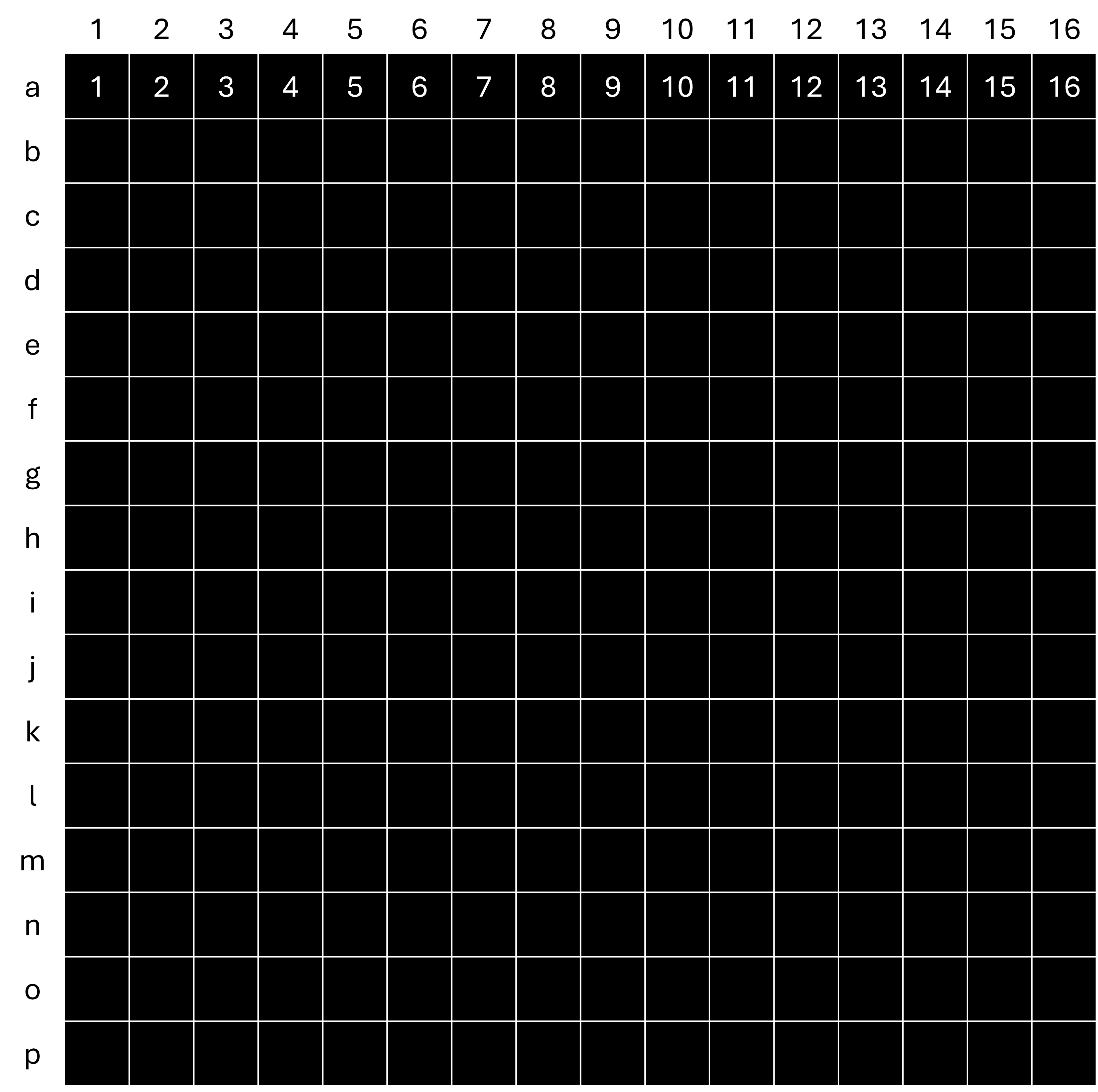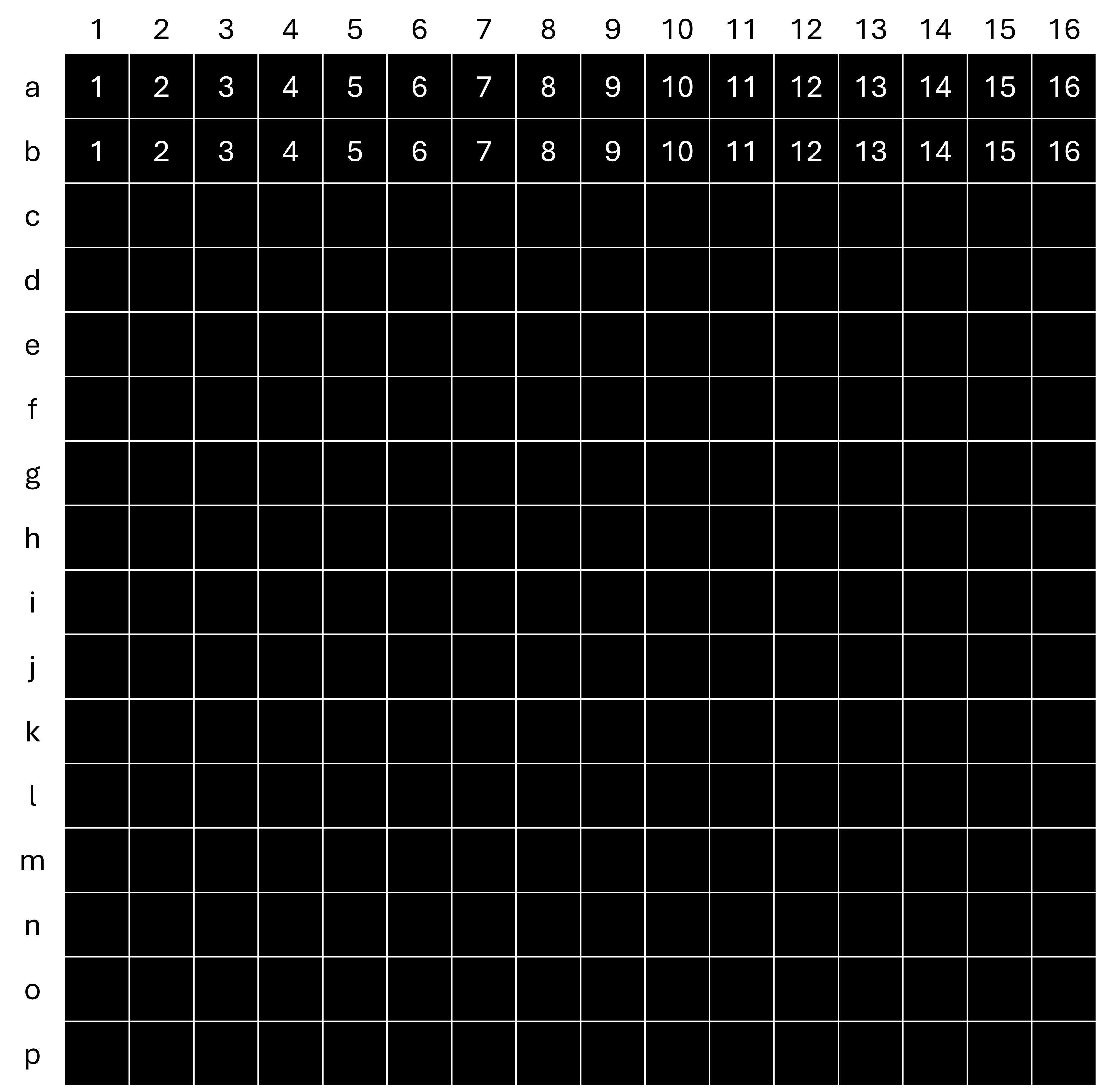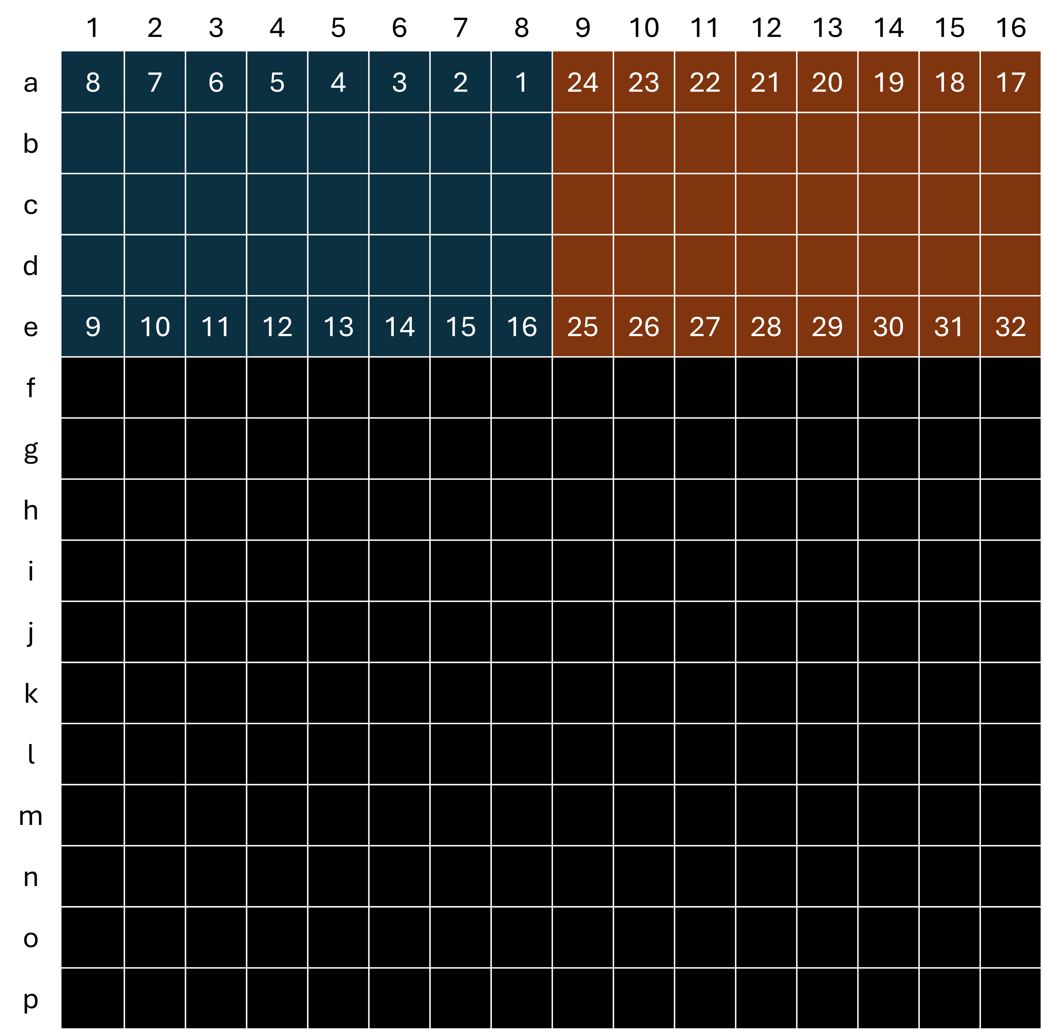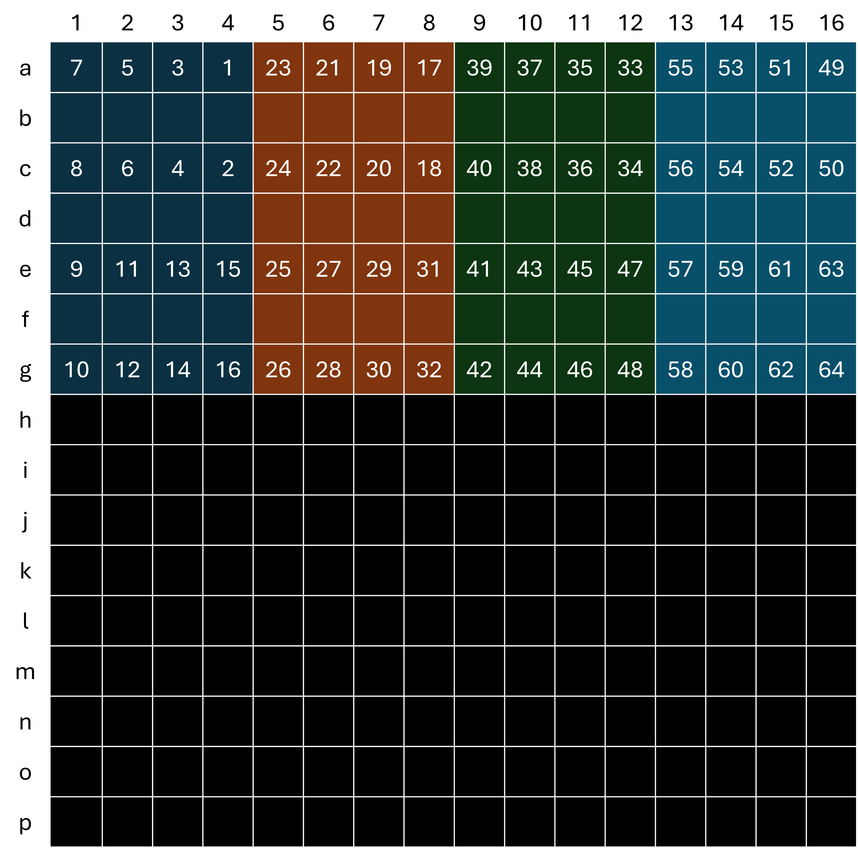 _)만 이용 - 행(소문자) - a=1행, b=2행, … , p=16행